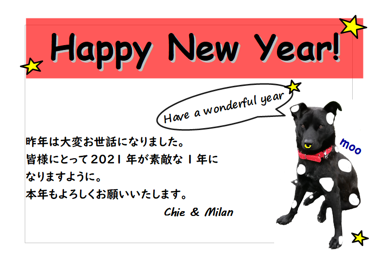 新年のご挨拶 1月 1, 20211月 1, 2021 Chie雑談お正月千葉県香取市千葉県香取市の英会話教室英会話教室茨城県潮来市茨城県稲敷市謹賀新年 明けましておめでとうございます2020年はどのような年でしたか?やりたいことは果たせましたか?昨年はコロナ禍によって思うようにできなかった方も多いかもしれません。なりたい未来の自分に少しでも近づけるように。英会話ができるようになりたいと頑張る皆さまを、私たちは全力で応援します。 〇お知らせ:ミラン、ツイッターを始める講師の一人、ミランがツイッターを始めました。日本語を勉強中なので、日本語で頑張ってます。解読が難しいことも多々ありますが、良かったらお付き合いください。ザプリ英会話教室twitter(中の人:ミラン) モデル:チャッテくんとても怖がりな男の子。普段はあまり顔を見せません。我が家の幻のアイドル。 2021年が皆さまにとって素晴らしい年になりますように!